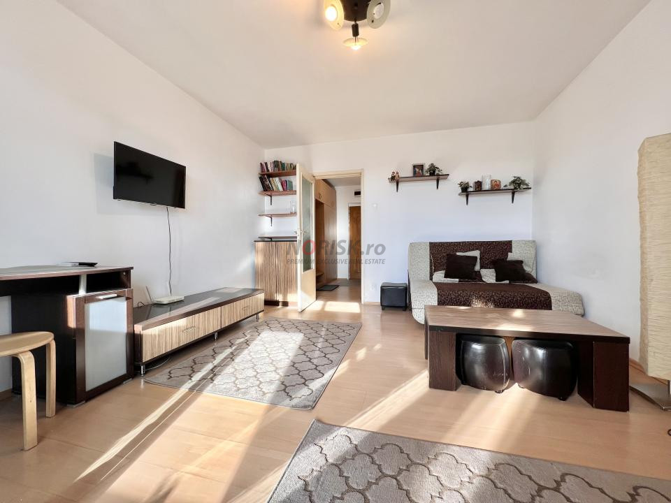 Situată chiar vizavi de metrou Costin Georgian, la etajul 8 din 9, Garsoniera beneficiază de o Vedere Liberă, Panoramică, Orientată spre APUS.