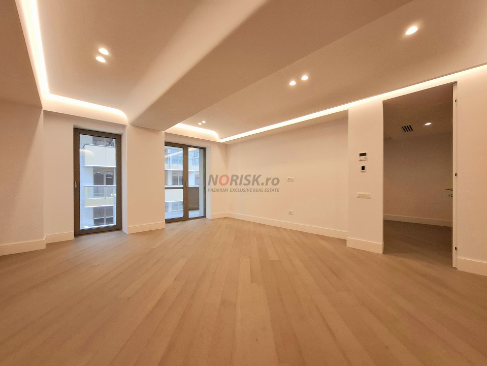 Apartamentul este excelent compartimentat, cu un living generos și luminos, zonă de dining bine definită, două dormitoare confortabile și băi finisate la standarde superioare.
