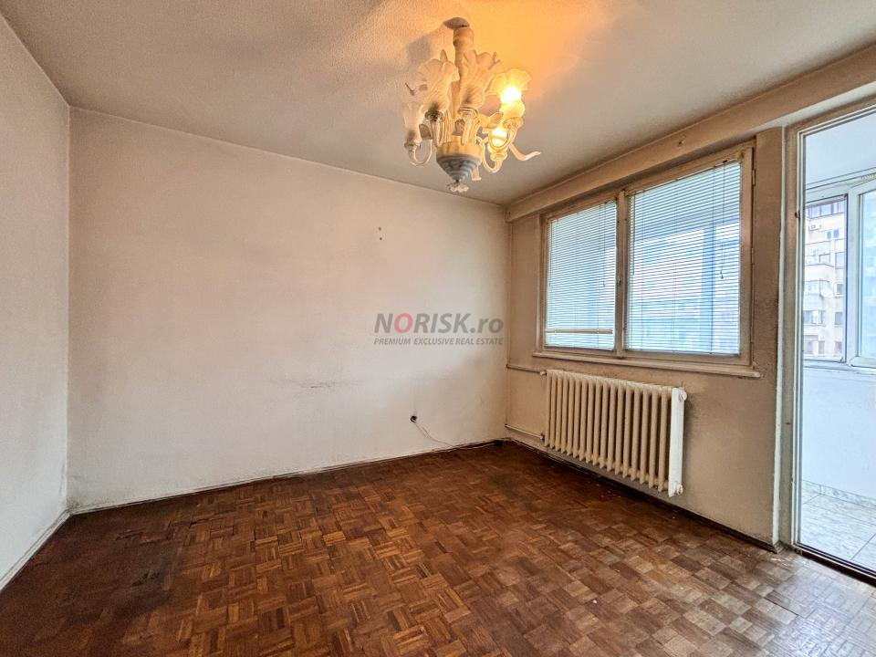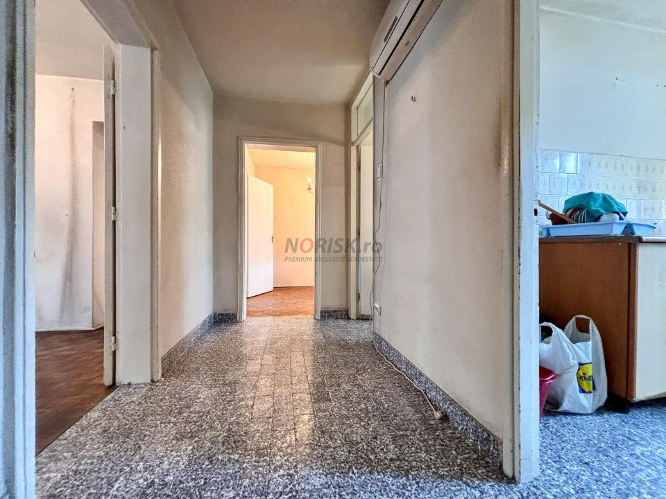 4 CAMERE , Etajul 6 din 9, SUPRAFATA 73 mp total (66 mp UTILI) + două balcoane generoase. Într-un bloc solid din 1961, reabilitat termic, FĂRĂ Risc seismic (Neexpertizat).