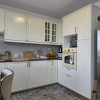 Bucătărie modernă complet echipată, deschisă către zona de luat masa