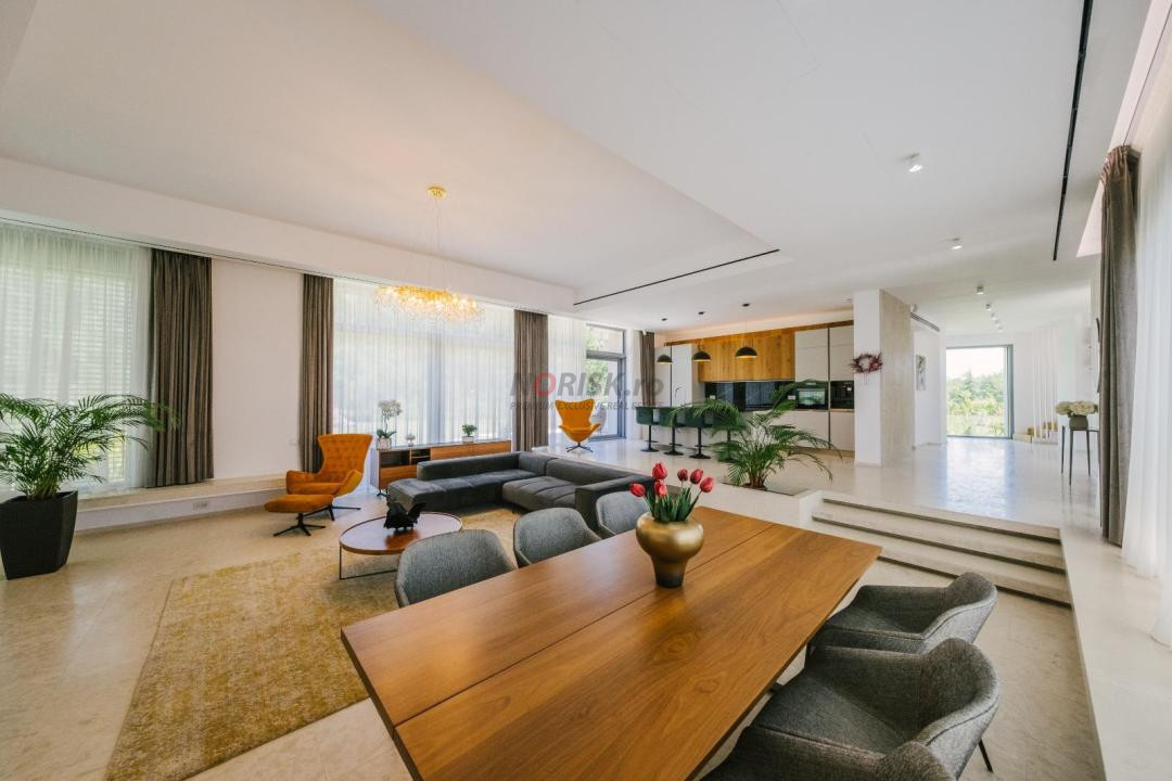 Această vilă modernă din Dumbrava Vlăsiei oferă un mix rar între arhitectură contemporană, tehnologie avansată și liniștea unei comunități exclusiviste, aflate în imediata vecinătate a pădurii.