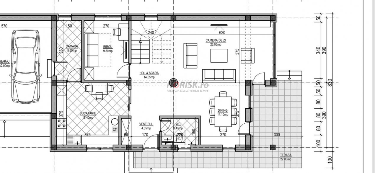 • Spatii utile: Pivnita, Spatiu depozitare, Dressing, WC Serviciu, Anexe, Dependinte