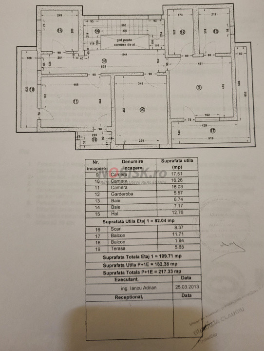 Interiorul, cu o suprafață utilă de 270 mp (300 mp construiți), este compartimentat armonios :