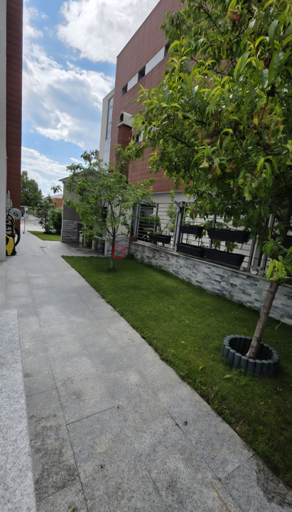 Curte amenajată cu piatră naturală și sistem de degivrare, gazon cu irigații automate și 9 pomi fructiferi maturi