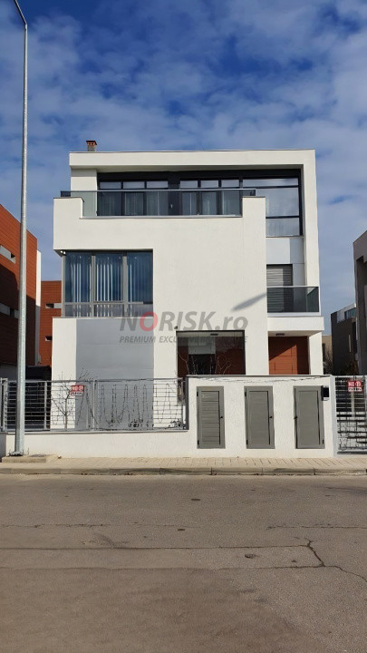 Situată în cel mai bine cotat segment al zonei de Nord, vila face parte dintr-o comunitate selectă cu acces controlat, liniște și trafic redus.