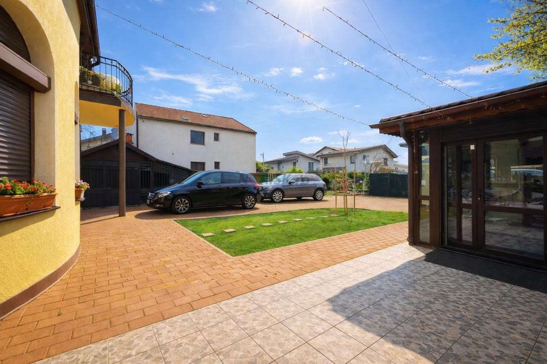 Curtea este amenajată cu alei pavate și spații verzi, oferind atât funcționalitate, cât și intimitate. Proprietatea beneficiază de un foișor închis, complet utilat, ideal pentru utilizare pe tot parcursul anului, zonă de grătar și afumătoare, spații de depozitare exterioare și toaletă exterioară complet finisată.