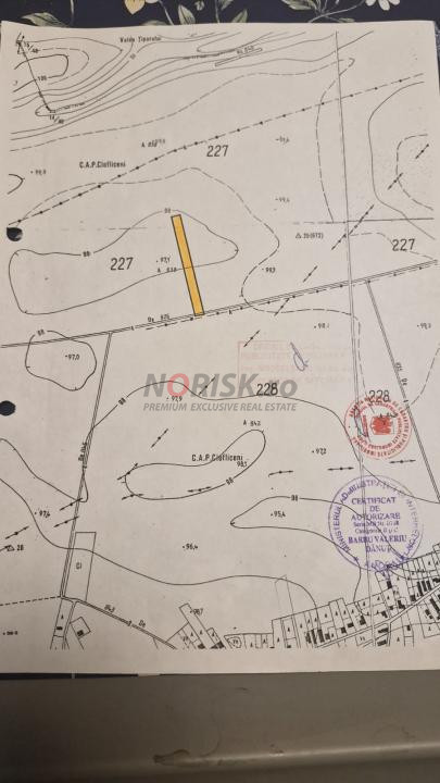 Acces: drum asfaltat până la 400 m, apoi teren — se poate amenaja acces pietruit.
